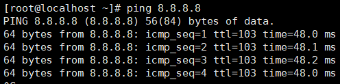 [root@localhost ~]# ping 8.8.8.8