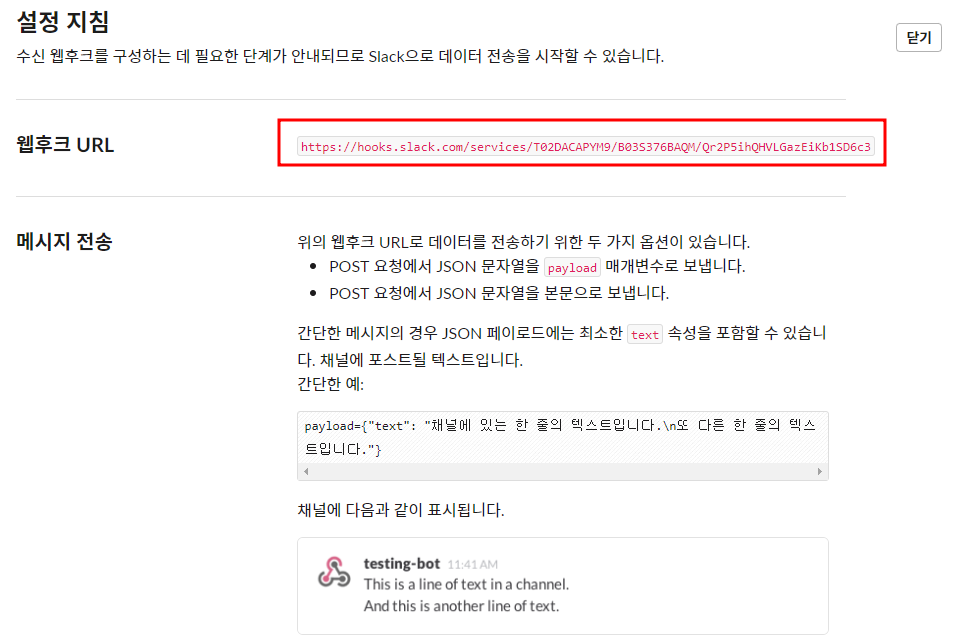 이제 기본적인 webhook을 이용한 알람 보내기를 마쳤다.
