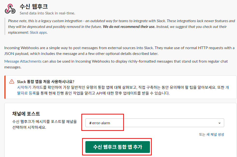 Slack Webhook API(Webhook)을 활용한 알람 기능을 추가하려고 한다.
