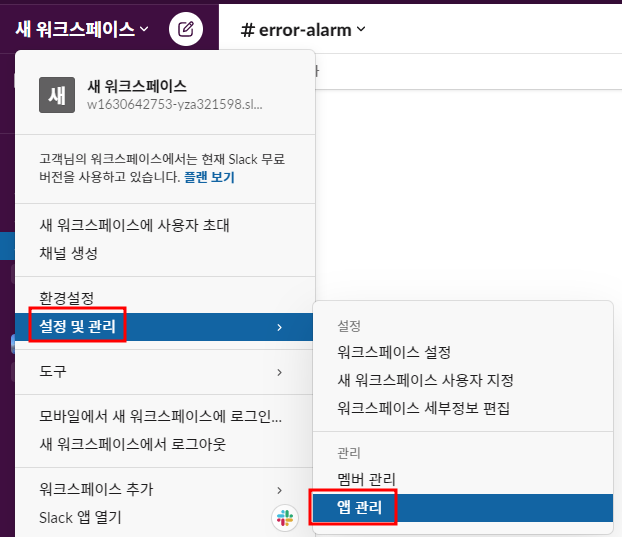 1. Slack 워크스페이스에서 채널을 생성한다.