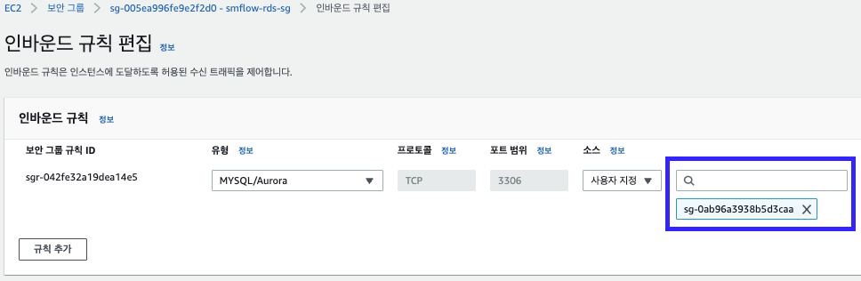 인바운드 규칙 정보에서 EC2 보안 그룹을 연결