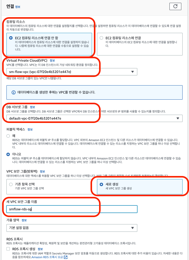 - RDS 식별자 인스턴스 정보를 확인할 수 있는 대시보드에서 연결 & 보안 항목에