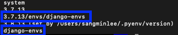 환경삭제 설명 : pyenv uninstall [가상환경 이름] <<< 알아만 두자.
