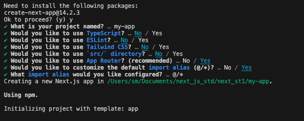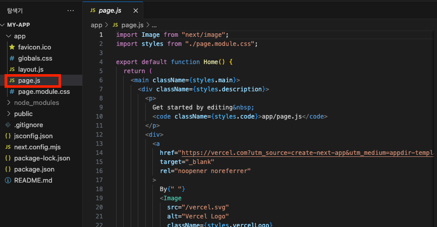 이렇게되면 project name이 my-app으로 생성되었기 때문에 폴더 안에 my-app으로 VSCode 에디터에서 다시 my-app 폴더로 열어주시면 됩니다.