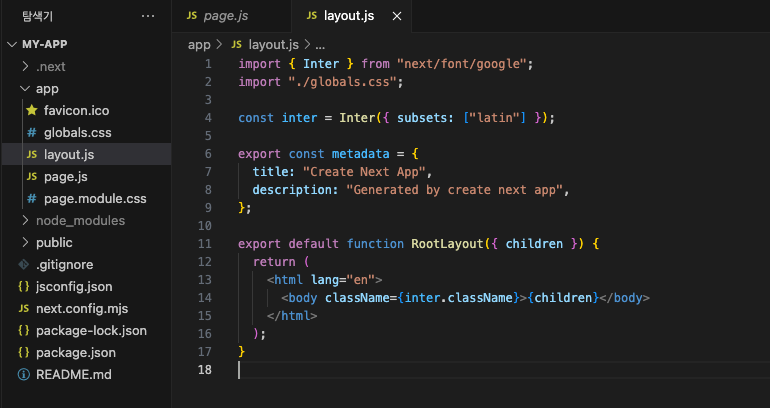 layout.js : 메인페이지 감싸는 용도의 페이지