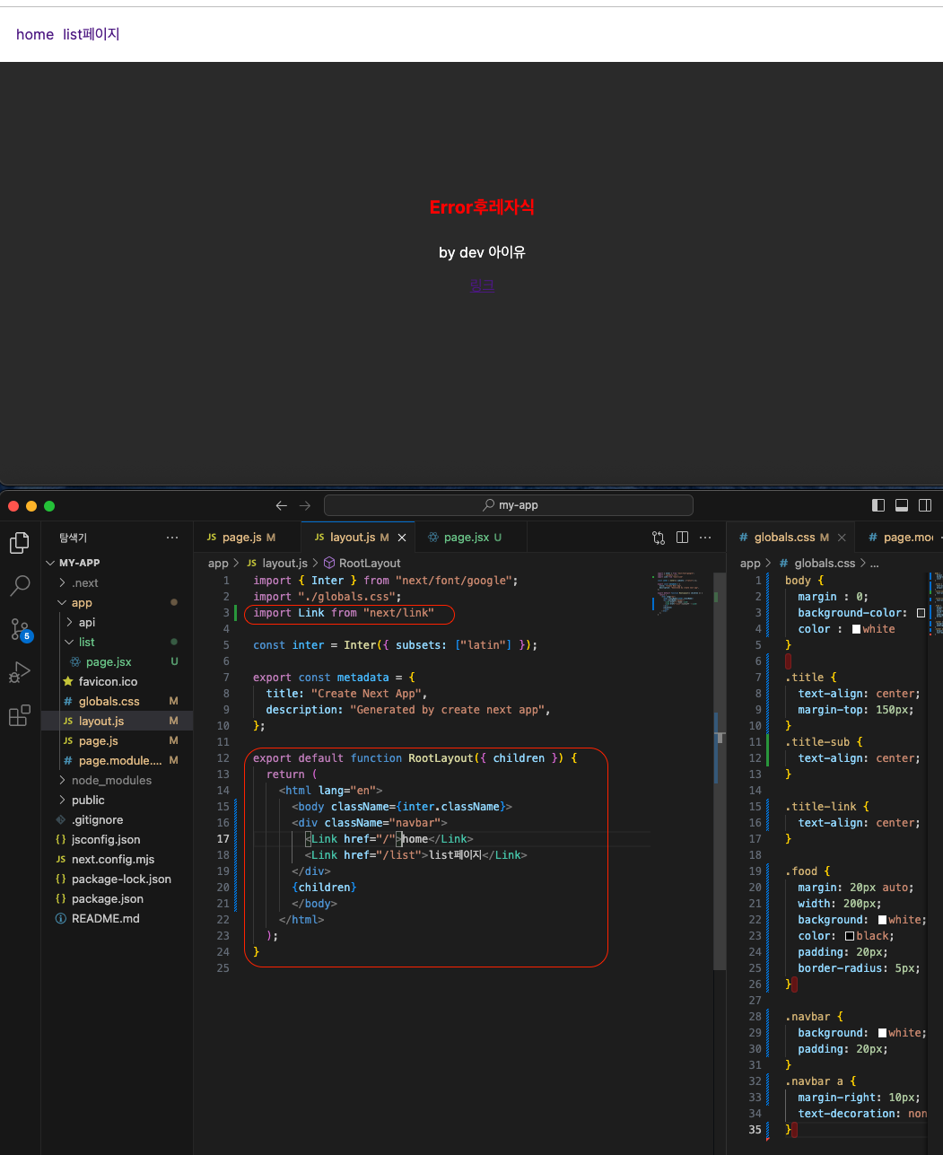 헤더같이 반복적으로 사용해야할 기능들이 있지요 그래서 layout.js에 navbar를 만들어 봅시다.